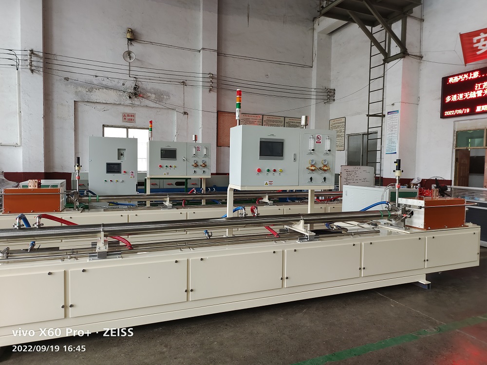洛陽用功感應(yīng)加熱設(shè)備公司提供的不銹鋼管在線光亮退火成套設(shè)備,是針對(duì)金屬管廠家在線光亮退火生產(chǎn)需要而專門設(shè)計(jì)的成套性設(shè)備,根據(jù)需方退火工藝要求,該成套設(shè)備由IWH系列全固態(tài)IGBT數(shù)字感應(yīng)加熱電源、氣體保護(hù)密封冷卻裝置、紅外線恒溫裝置、軟水-水循環(huán)冷卻系統(tǒng)、智能型包含plc電控系統(tǒng)及觸摸屏顯示等組成系列生產(chǎn)線。