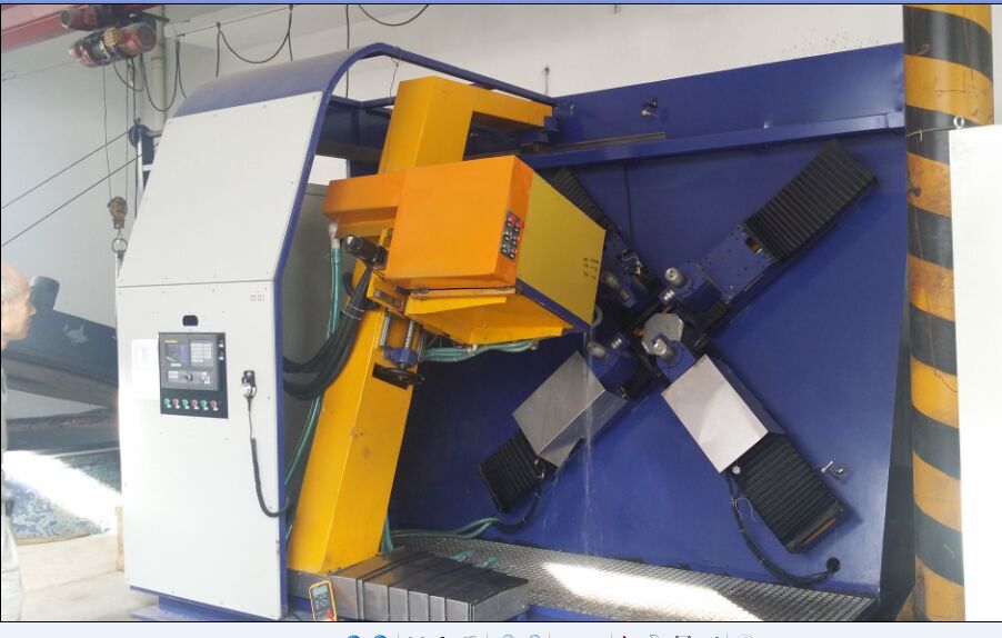 組成部件:機(jī)床采用水平移動支座加回轉(zhuǎn)工作臺方式,變壓器上面具有左右、上下移動的功能,回轉(zhuǎn)工作臺采用交流伺服電機(jī)驅(qū)動,導(dǎo)軌上面采用矩形直線導(dǎo)軌,另外回轉(zhuǎn)工作臺可自動分齒。在淬火過程中無需人工調(diào)整,設(shè)備可自動完成全部齒輪的淬火。