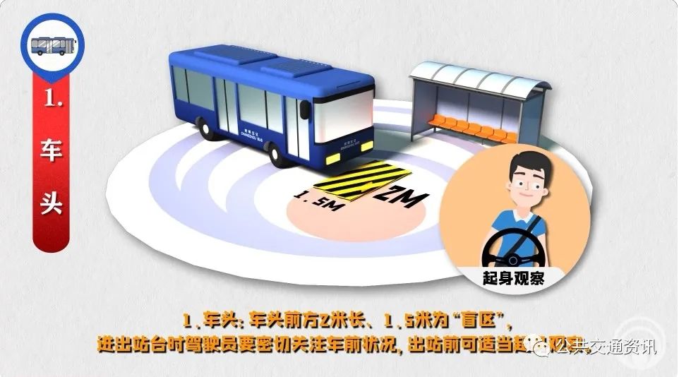 “盲區(qū)”是由于視線受到遮擋,駕駛員無法直接看到的車輛外部的區(qū)域。公交駕駛員運(yùn)營時要防范各類“盲區(qū)”風(fēng)險。