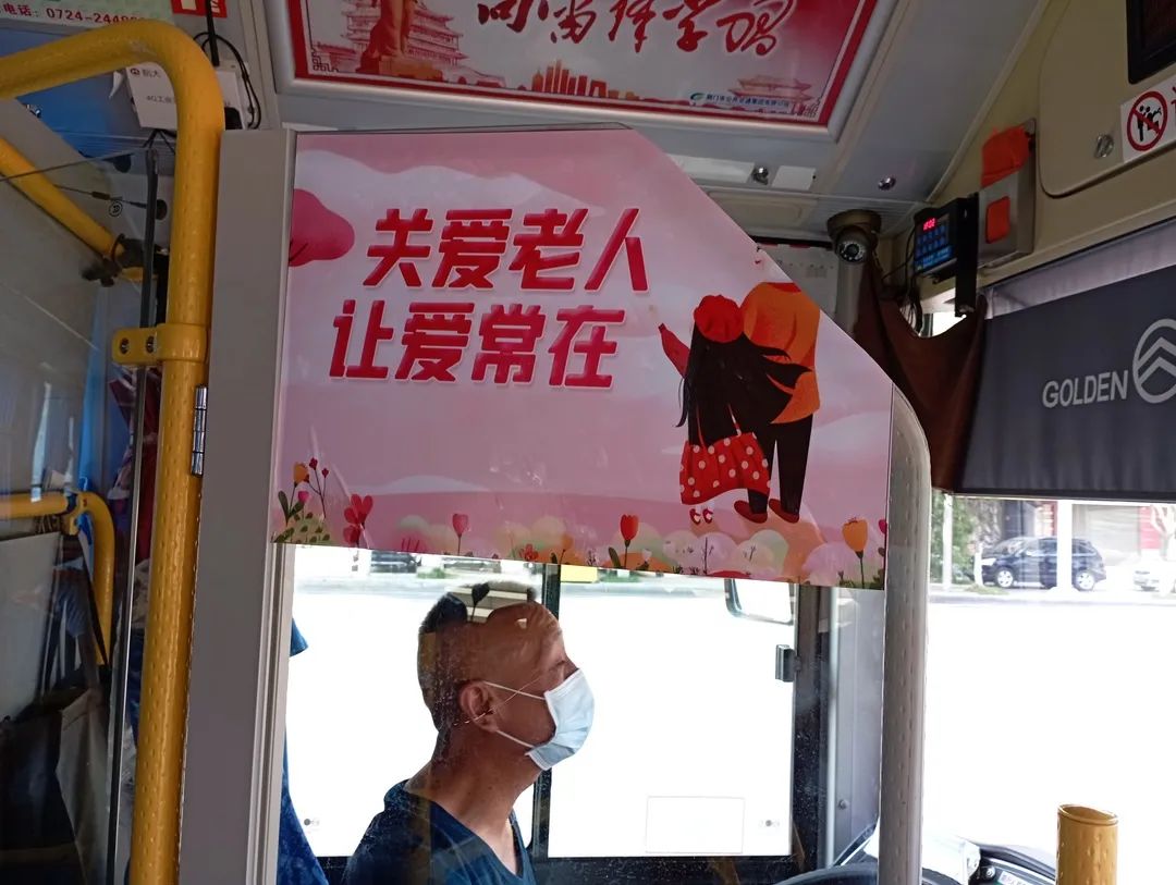 作為公司首條公交“敬老示范線”,1路車輛上的許多細節(jié),都體現(xiàn)著對老年人的關懷。車廂內,駕駛室門、座位間靠背都貼有尊老敬老的標語,宣傳敬老文明思想,營造和諧溫馨氛。